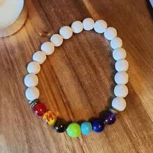 1 Chakra bracelet7 Chakra 8mm white lava stone Lava Stone elastic Bead Bracelet
