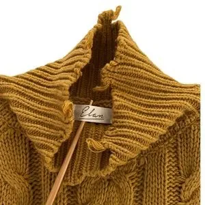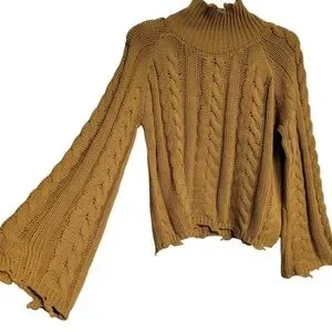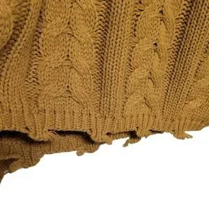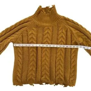 EUC • Mustard color distressed cable knit sweater by Elan. Slightly cropped fit, frayed hemlines for added style. 100% acrylic. See photos for measurements.