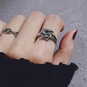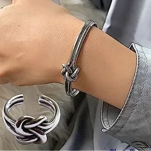Sterling Silver Knot Bangle Cuff Bracelet Ring Matching Set