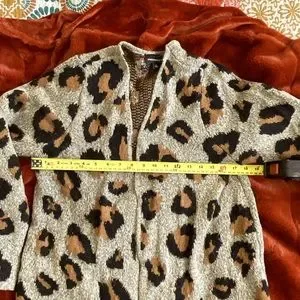 For all you animal print lovers. A Fortune and Ivy cozy size M duster/lounge cardigan, has slight fuzziness or pilling overall due to normal wear.