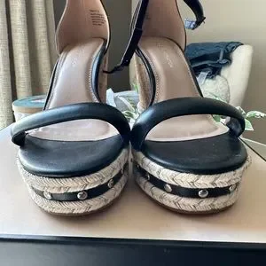 BCBG Generation wedges . Size 7.5. Black with studs on the wedge . Very comfortable and girly . Perfect for summer ! Worn only once . They are new basically . Box included