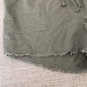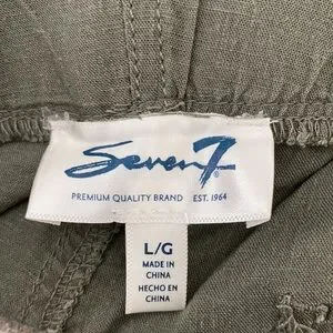 Seven7 green “Laguna” soft pull on shorts. Size Large Elastic waistband with drawstring. Patch pockets. Fringe at leg opening. NWT. Waist measures approx 35 inches. Rise measures approx 11 inches. Inseam measures approx 3 inches.