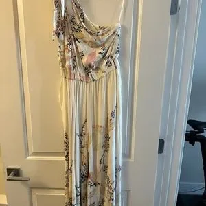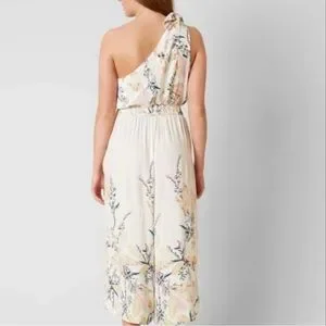Free People Island Time Cream Color One Shoulder Wide Leg Jumpsuit — NWOT