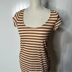 Brand new with tags white and mustard yellow stripe midi dress with lace up back detail size large but fits like a medium!