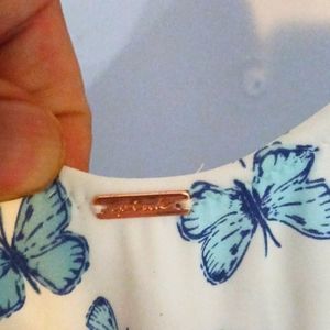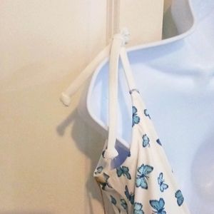Nwt Victoria's Secret Pink one piece swim suit with low back, v-cut neckline and tie up straps. Beautiful blue and white butterfly print.