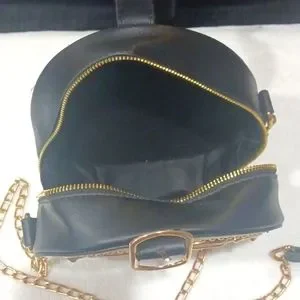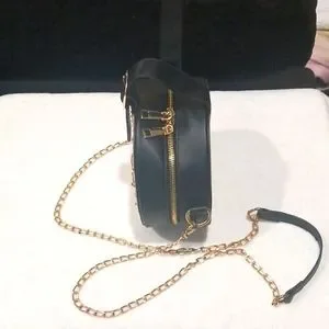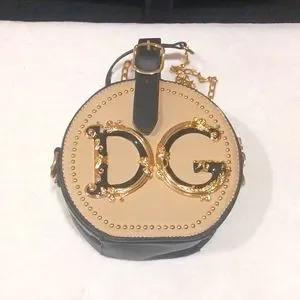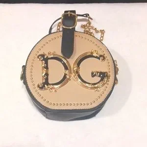 Pre-loved condition trendy fashion purse. Cream, brown with gold hardware, faux leather and straps. 7 inches wide, 7 inches long and 23 inch drop. Great fashion trendy purse.