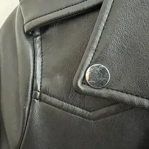 Faux leather jacket in black with silver finishes.