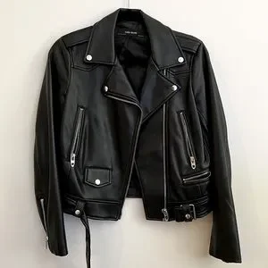 ZARA Black Faux Leather Motto Jacket