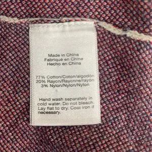 - 77% Cotton, 20% Rayon, 3% Nylon