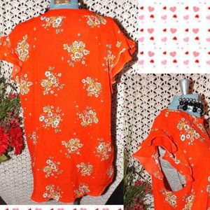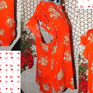 Lip Slide Red Oriental Flowers 1/4 Sleeve Top