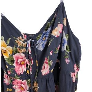 TORRID Blue Pink Yellow Floral Smocked Sun DRESS 4 4X Tie Front Tank hi lo hem