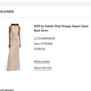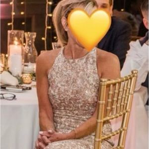 Beautiful with slight stretch, comfy floor length open back (without being too low). Was altered at bust and length to fit 5’2” 108 lb.