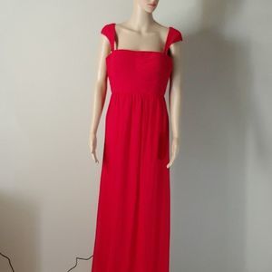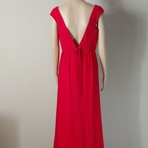 Beautiful Faviana A-Line Red Formal Gown Style 6237 with cap sleeves. The dress has a pleated bodice and has a sexy low back. It is light and very comfortable. Measurements- Bust 37, W 29, Hip 39.