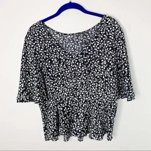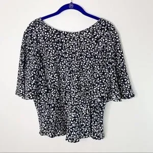Who What Wear black & white floral peplum short sleeve blouse size small