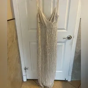 MAC DUGGAL Sequin Stripe Trumpet Gown in Pearl Size 6 New, never worn extra bead