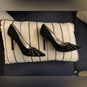 Guess Suede Stiletto Heels with Silver Studs Black "WGMAIRE" Sz 8 NEW No Box