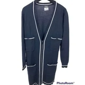 Chanel Uniform Long Preppy Cardigan in Navy Blue