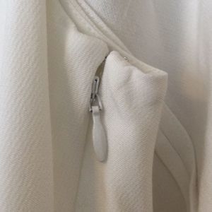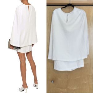 Self: 96% viscose 4% elastane.Lining: 100% poly. Dry clean only. Fully lined. Cape back with loop button keyhole. Hidden side zipper closure. Imported.