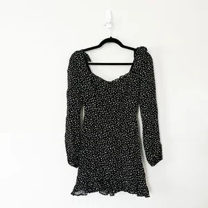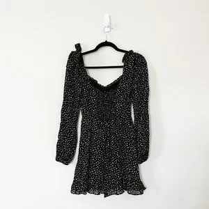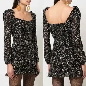 REFORMATION Polka Dot Confetti ELIN Square Neck Bow Shoulder Mini-Dress XS
