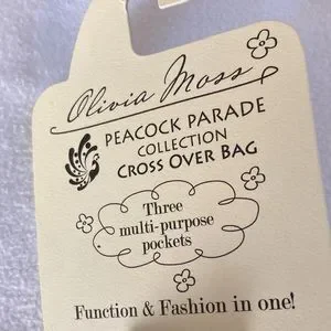 Beautiful Three Multi-Purpose Pockets Cross Over Bag made by Olivia Moss Peacock Parade Collection. Light weight great for travel 100% polyester washable.