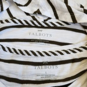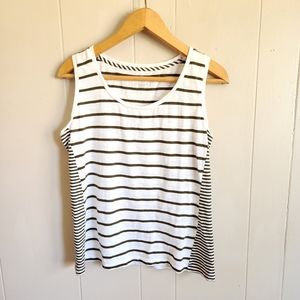 Talbots twin set cardigan tank top olive green white striped stretchy knit S