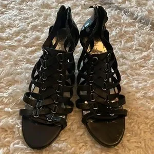 Like new See photos 3 1/2 inch wedges Zip up back Bundle and save