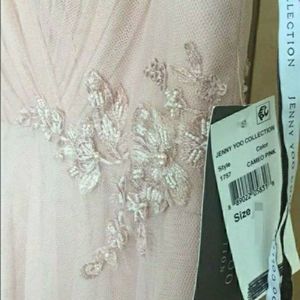 The Emelie Appliqué features a sheer illusion V-neck with straps that support the bodice. Ruching from the neckline draws the eye down towards the smallest part of the waist. Appliqués on the supportive strap and the waist add extra detail to the bodice for a more unique look. The floor length circle skirt creates a soft and beautiful sweeping effect. This dress is fully lined with an invisible center back zipper.