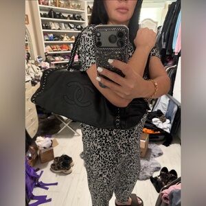 CHANEL Large Chain Trim Luxe Ligne Bowler Boston Bag