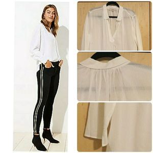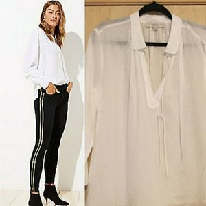 RUFFLE SPLIT NECK BLOUSE. New no tags.cotton transparent.