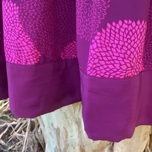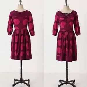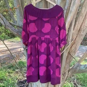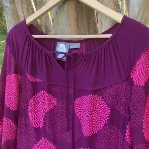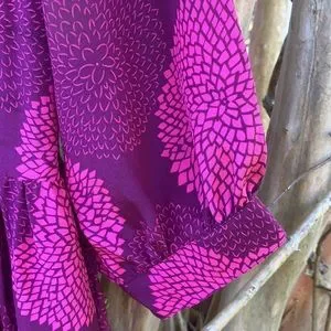 EUC. Lightly worn. Beautiful fuchsia color with floral ball print throughout. 100% silk. Tie neckline. Side zipper closure. Has pockets. Slight balloon style 3/4 length sleeves with button closure. Perfect for any spring/summer get-together.