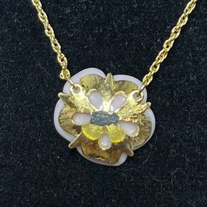 Gold Tone Rope Chain 15" Necklace With Pink Flower (4299)
