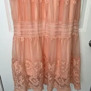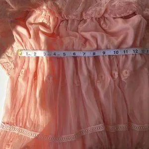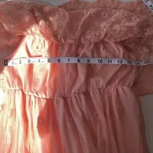 Peach prairie dress vintage lace style off the shoulder floral design small med