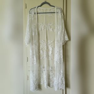 • Long Sheer White Floral Lace Kimono