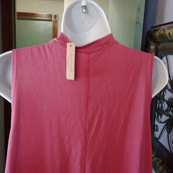 NWT Statement Neckline Lavender Field ( by anthropology)sleeveless silky knit top- V- Neckline with strap - raw neckline edges- flares out for great fit & flow-'pinkisk Rose color - such fun/ cute top with endless wardrobe possibilities