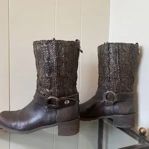 Worn once. Could be ankle or mid-calf depending on height. Perfect for music festivals in the summer. Silver loop/circle detail is both edgy and western. Knitted weave pattern. Feel free to offer!