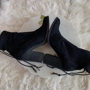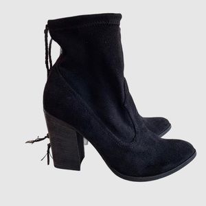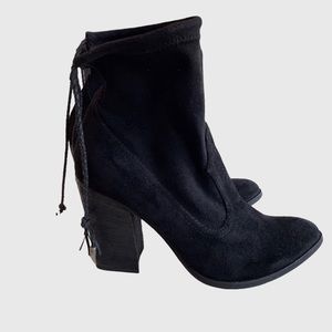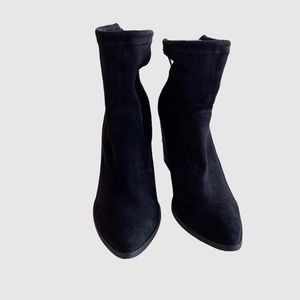 DOLCE VITA CASEE BLACK LEATHER BOOTIE BLACK ANKLE BOOTS CHUNKY HEEL BOOTIES POINTY TOE BLACK STRETCHY EASY TO PUT ON BOOTIES SIZE 8 WITH APPROXIMATELY 4” HEEL GENTLY USED RIGTH BOOT IS MISSING ONE CHARM GOOD CONDITION MODEL PICTURES ARE FOR STYLING PURPOSES ONLY NOT ACTUAL COLOR FOR SALE