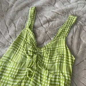 Sooo cute for spring!! Has a side zipper and string in the front to tie how ever. Tag says size 6 but I usually wear a 2-4 in dresses so could be either