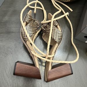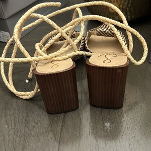 Sam Edelman Women Bodhi Tie Closure Open Toe Sandals, Black/Natural
