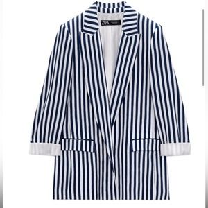 NWT ZARA STRIPED POCKETED BLAZER NAVY / WHITE | 7560/825 size Large