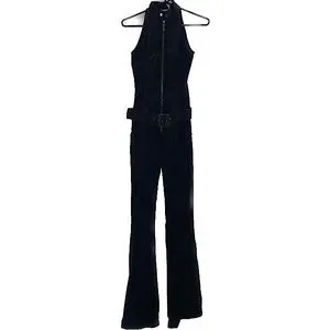 J.Lo by Jennifer Lopez Black Corduroy Halter Jumpsuit y2k size XS
