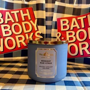 Midnight Blue Citrus 3 Wick Candle Bath and Body Works White Barn NEW Label