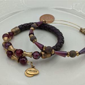 Leather beaded wrap and wood and crystal Beaded Bracelet in dark main maroon red, brown leather and a Rafaleian Gold finish. Excellent condition. Please see pictures for details and condition. Thanks for looking!