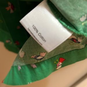 Hanna Anderson girls 14 top green w birds cotton ruffles