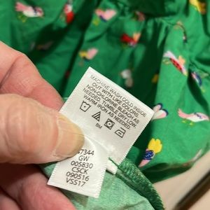 Super cute green girls sz 14 top. Button back side ruffles. Colorful birds on green. Excellent condition and worn only once. Sz 160. Across front 16.5”. Across waist nearly 15” no stretch!!