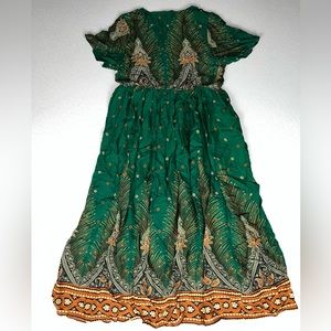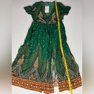 Bloomchic Bandana Pocket Button Wrap Split Midi Dress Size 10 Green New with tags.