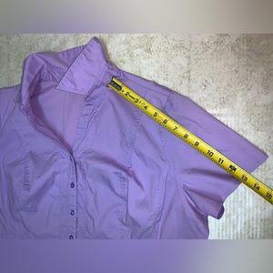 The baby blue one has a light spot on the back, that’s the only flaw. No other issues. The purple one is 25” across the chest and the other 3 are 24” inches across the chest. Also sold separately in my closet.