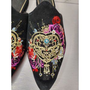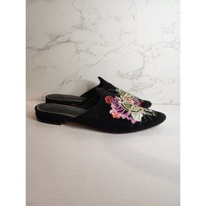 Camilla Franks sz 39 Slipper Shoe Slip on Mules Suede Embellished Embroidered