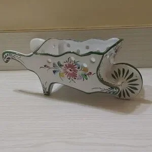 Vintage Spring Easter Porcelain Planter Hand Painted Floral Wheelbarrow Portugal