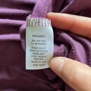 Gently used purple tie dye maxi dress with pockets. Soft, stretchy tee shirt like material. I am 5’8” and it is a few inches above my ankle.