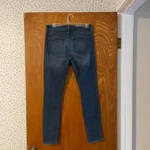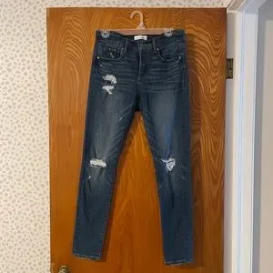 Loft Modern Skinny Jean. Dark wash with distressing. Stretchy.